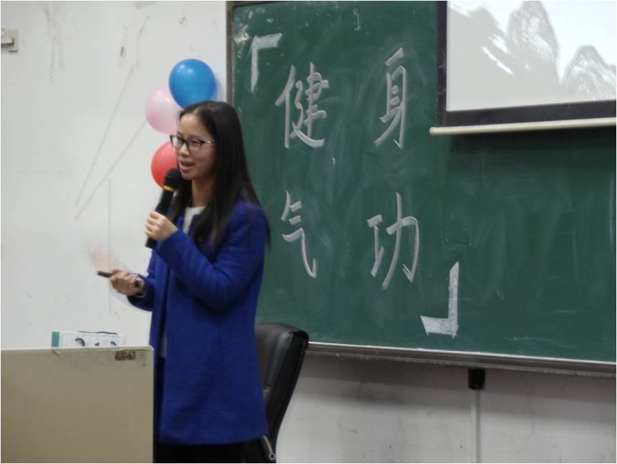 罗倩老师对健身气功的定义和原理、历史和发展进程、前景和推广情况进行系统解说,介绍科普健身气功的基础知识,纠正部分同学对气功的误解。罗老师还为大家介绍了健身气功中的易筋经、五禽戏、六字诀、八段锦。同学们听得全神贯注,有的还认真地做笔记,现场气氛活跃,座无虚席。