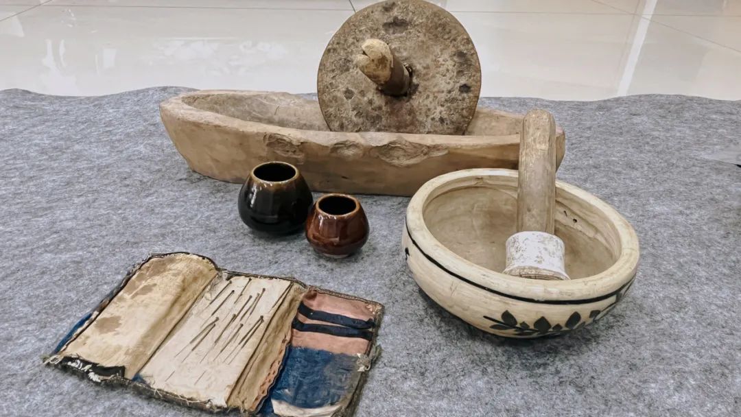 余松、林贵芳医生联合捐赠清代、民国时期的药罐、研钵、针灸包等传统医药用具及祖传骨伤外用秘方。余松为安徽省淮南吴氏中医第四代传人,林贵芳为江西省万载县林氏第六代中医传人。