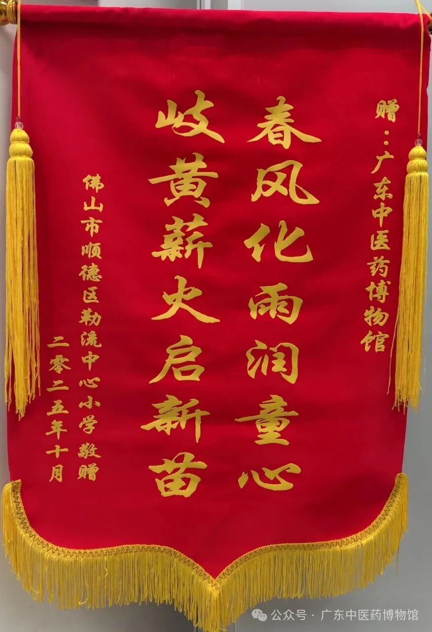 今天收到了佛山市顺德区勒流中心小学送来的锦旗,金灿灿的大字,是对我们中医药研学工作最温暖的肯定。